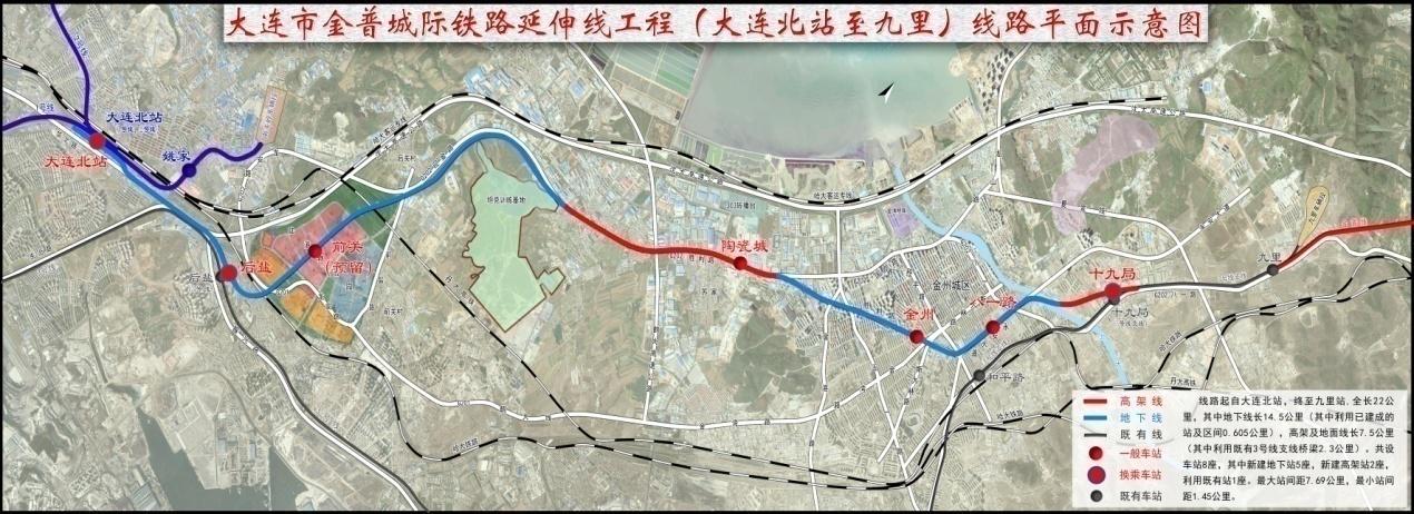 二期工程:大连北站-九里线路全长约22公里。()内规划车站。在终点振兴路以北普兰店铁西区二道岭街张店村北至皮长高速公路间设车辆段1处。