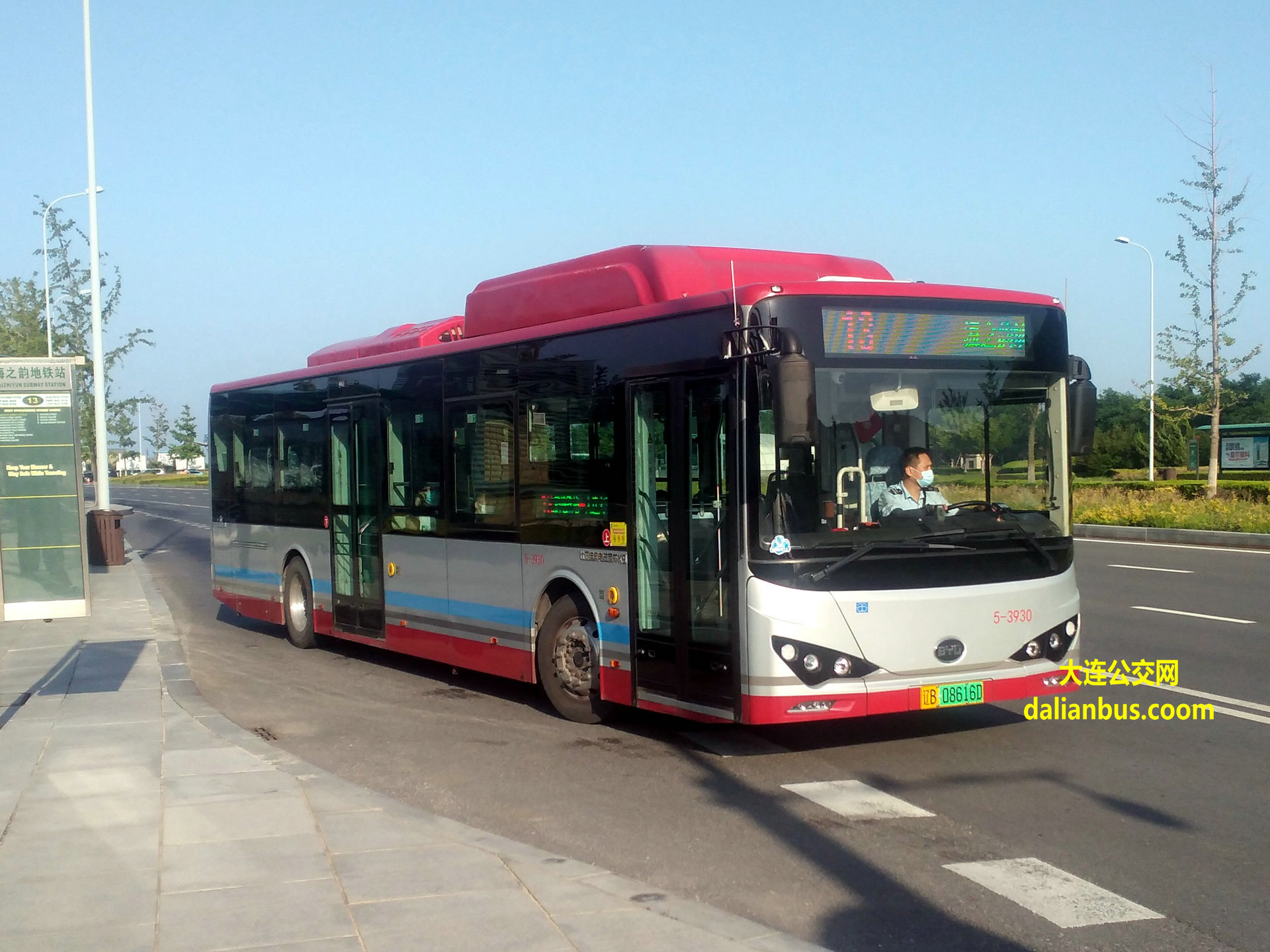 海之韵地铁站—东日街北—港东八街—港东六街—港东五街—港东一街—东港游艇码头—珠莲路—会议中心—港浦路—港湾广场—职工街—民主广场—胜利桥—大连火车站